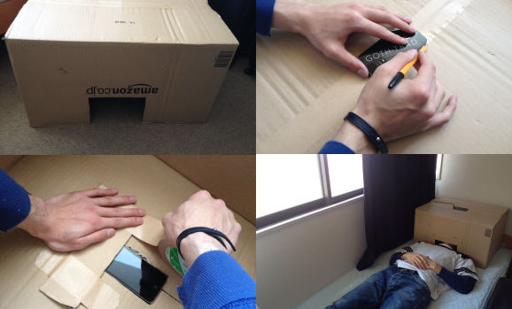 Seperti dikutip dari lifehacker.co.uk, akhir-akhir ini banyak orang yang mengubah kardus menjadi benda aneh yang dipasangkan di kepala. Sembari berbaring, kardus kotak yang cukup besar menutupi seluruh kepala dengan hp atau gadget di bagian atasnya.