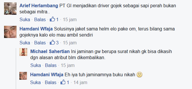 kemudian hal ini langsung menjadi perbicangan yang ramai di media social facebook.Ada yang berkomentar pedas terhadap PT. Gojek Indonesia, dan ada pula yang pernah mengalami hal serupa.