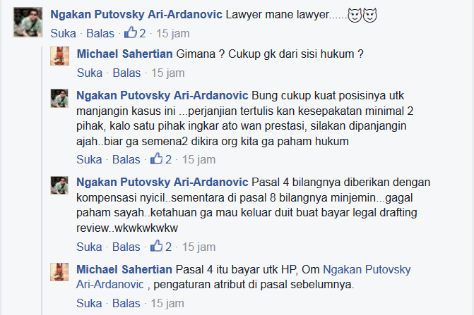Saat itu berdasarkan perjanjian maka status saya adalah MITRA bukan KARYAWAN. Di surat perjanjian (terlampir) disebutkan bahwa Atribut seperti Jaket dan Helm GOJEK di PINJAMKAN kepada Driver akan tetapi jika hilang / rusak maka akan dikenakan biaya penggantian sebesar Rp 200.000,- dan surat perjanjian itulah yang saya TANDATANGANI di atas materai dengan tinta basah.
