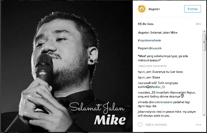 Setelah kabar duka atas kematian mike modehe tersebar viral di berbagai media sosial. Banyak ucapan duka yang datang. Baca : Penyanyi Mike Mohede Dikabarkan Meninggal Dunia