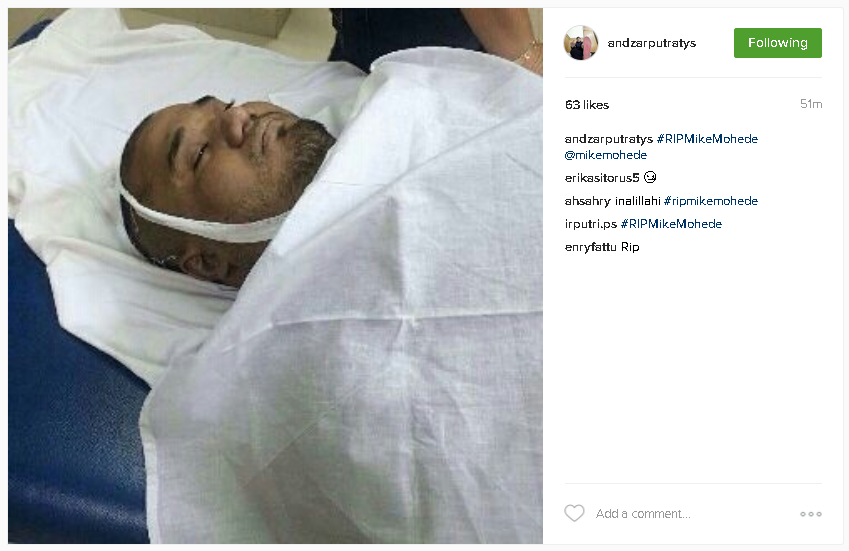 Mike Mohede dikabarkan meninggal dunia karena serangan jantung, hari ini Minggu 31 Juli 2016 di Rumah Sakit Bintaro Jakarta. Sosial media pun ramai ucapan duka untuk pria kelahiran Jakarta 7 November 1983 ini.