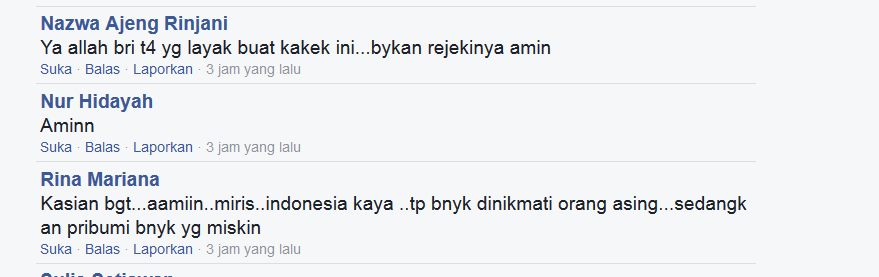 "Jangan cuma d ambil fotonya donk bantu dia atau kasih sumbangan." kata akun Maharani Serly.