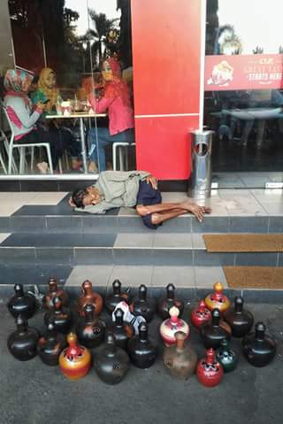 Sebuah foto yang diunggah oleh akun facebook Eris Riswandi pada Selasa (23/08/2016) pagi tadi, mengundang banyak simpati netizen. Foto seorang kakek yang berjualan celengan berbentuk kendi warna warni ini membuat banyak netizen merasa kasihan.