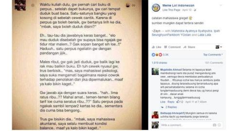 Satu perpus pada ngakak sambil lepar-lempar kertas ke dia..