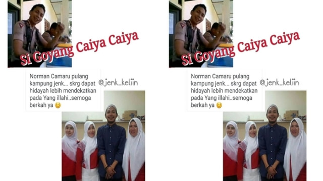 “Norman Camaru pulang kampung jenk… skerang dapat hidayah lebih mendekatkan diri pada Yang Ilahi..semoga berkah”tulis kalimat yang tertera di foto yang diunggah itu.