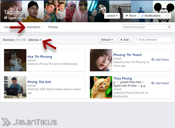 3. Blokir semua Admin grup Facebook tadi. Caranya pilih tab Member > Admin.