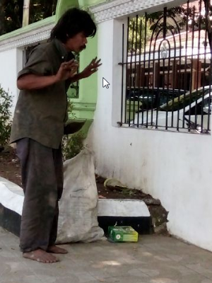 Malulah kepada sosok orang kurang waras yang berhasil diabadikan oleh seorang netizen bernama M Miftah Farid. Melalui akun Facebooknya, ia membagikan sejumlah foto yang memperlihatkan seseorang yang kurang waras namun melaksanakan shalat di trotoar depan masjid.