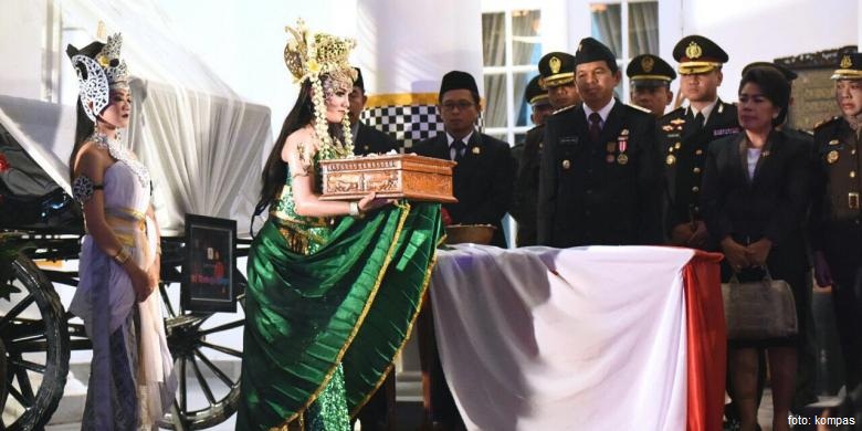 Di kabupaten tersebut, bendera merah-putih diserahterimakan kepada Bupati Purwakarta Dedi Mulyadi dari sosok Nyi Ratu Kidul. Bendera itu kemudian diserahkan kepada paskibra untuk dikibarkan pada upacara bendera.