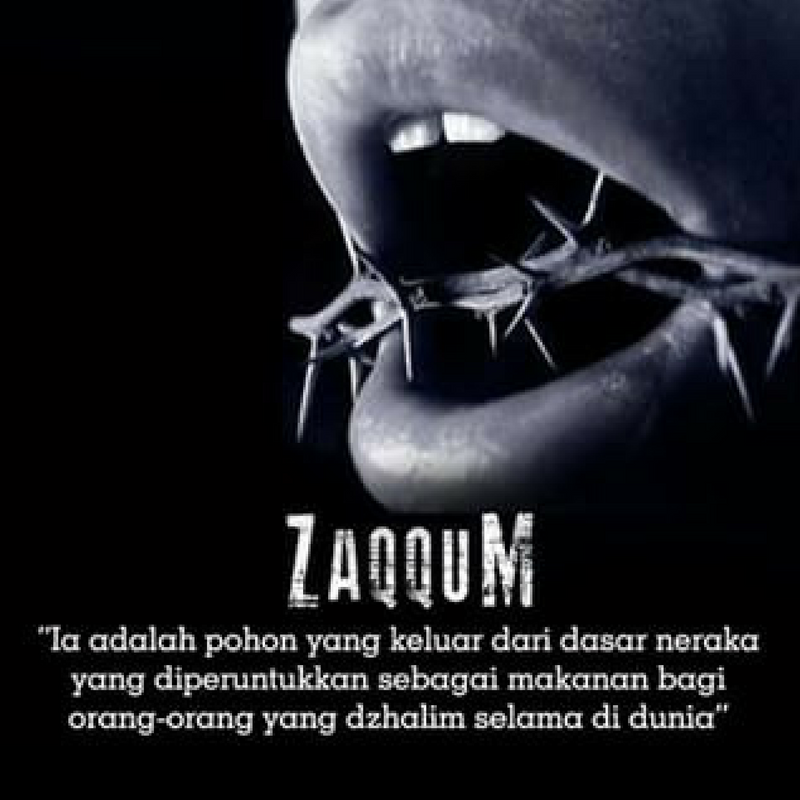 ”(Makanan surga) itulah hidangan yang lebih baik ataukah pohon zaqqum. Sesungguhnya kami menjadikan pohon zaqqum itu sebagai siksaan bagi orang-orang yang dzalim. Sesungguhnya ia adalah sebatang pohon yang keluar dari dasar neraka jahim. Mayangnya seperti kepala syaitan-syaitan. Maka sesungguhnya mereka benar-benar memakan sebagian dari buah pohon itu, maka mereka memenuhi perutnya dengan buah zaqqum itu. Kemudian sesudah makan buah pohon zaqqum itu pasti mereka mendapat minuman yang bercampur dengan air yang sangat panas. Kemudian sesungguhnya tempat kembali mereka benar-benar ke neraka jahim”.(As Shaffat:62 – 68 )