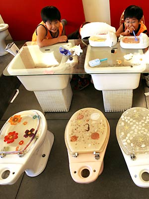 Dan menampilkan lima buah foto berseri dari cafe tersebut. pembaca di ajak untuk secara dekat melihat bagaimana Kafe jamban itu bentuknya, dan bagaimana cara mereka menyajikan makanan dan minuman di atas tempatnya buang hajat tersebut.