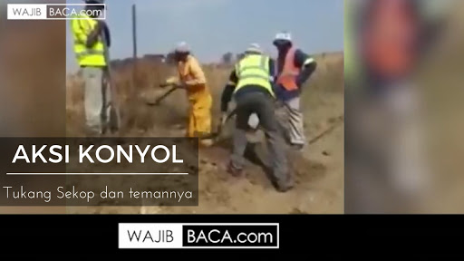 Aksi ini terjadi karena salah seorang pekerja mengerjai temannya dengan terus menambahkan tanah yang ia gali dan yang membuatnya tampak lucu adalah tukang sekop satunya tidak sadar bahwa dia dikerjai dan tetap bekerja. Mau tau aksi konyolnya? Tonton video berikut ini.