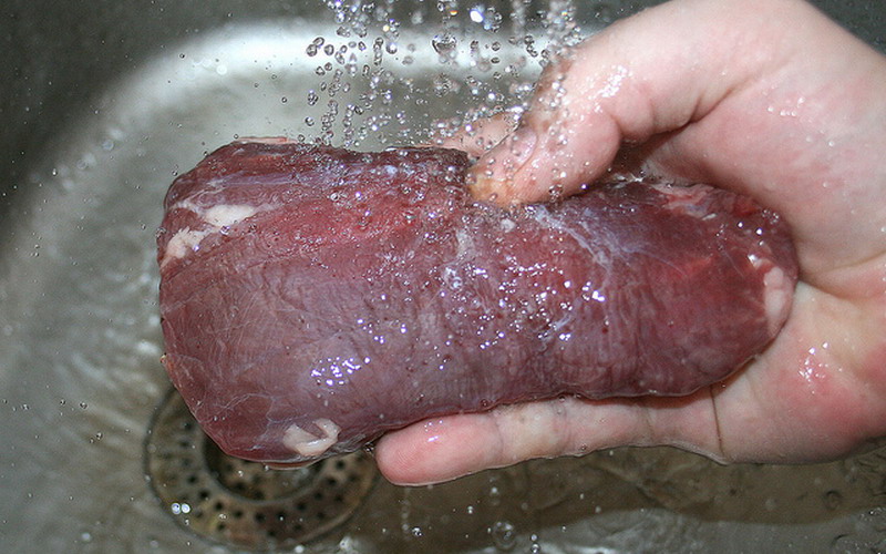 Normalnya daging harus dicuci bersih dahulu sebelum dimasak.
