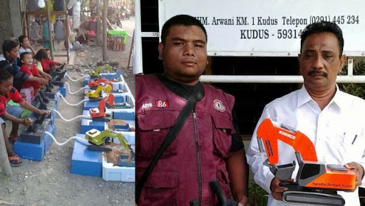 Tapi seorang warga Kudus membuat inovasi mainan baru yang menarik. Ia adalah Aryo Naradha, warga Dukuh Lemah Gunung, Desa Krandon, Kecamatan Kota, Kabupaten Kudus, Jawa Tengah. Bersama rekannya, Amat Qodir Jailani yang tinggal di Batang, Jawa Tengah, Aryo membuat mainan anak berupa eskavator mini.