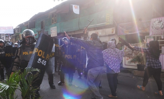 Penggusuran yang dilakukan oleh aparat satpol PP di Rawajati yang berdampak pada 60 Kepala keluarga ini mendapat penolakan keras warga sehingga berakhir ricuh.