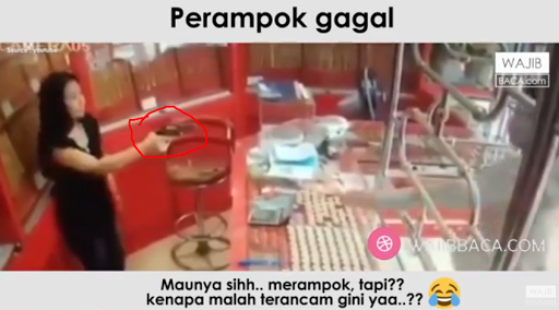 Mengetahui orang tersebut ingin membawa lari emasnya, penjual itu pun langsung membuka laci dan mengeluarkan pistol untuk menggertak pencuri itu. Ehh, bukannya lanjut lari, pencuri itu malah balik mengembalikan emas yang ia bawa lari. Tak hanya itu saja, pencuri itu juga tampak konyol ketika minta maaf dan sangat takut kepada wanita yang menodongkan pistolnya itu. Berikut video kocaknya.