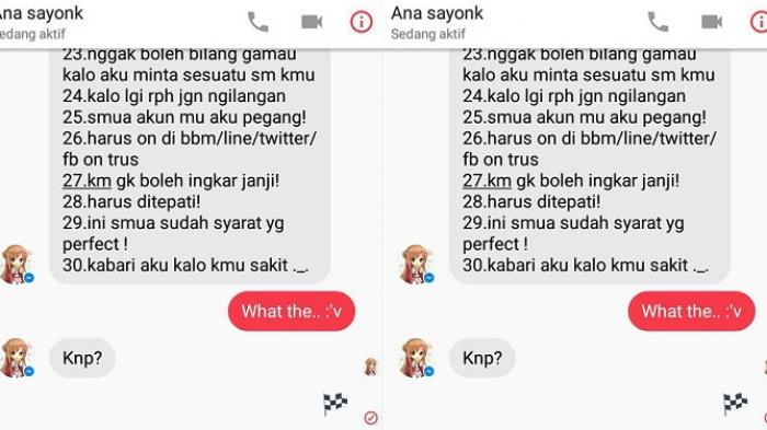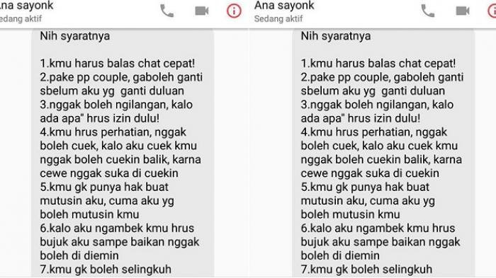 Diunggah oleh akun bernama @juriglagu di Twitternya ini. Ia mengunggah sebuah gambar yang berisi 30 aturan pacaran seorang wanita kepada kekasihnya.