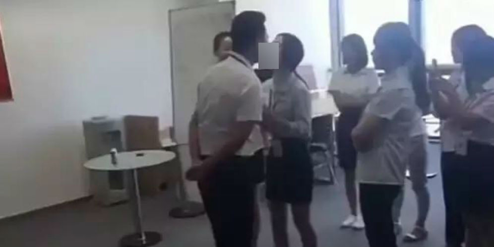 Bisa dikatakan menyalahi norma, perusahaan di Beijing ini sungguh keterlaluan. Layaknya mesin absensi, bos di perusahaan pembuatan minuman di distrik Tongzhou, China, ini menyuruh karyawati untuk berbaris untuk menciuminya.