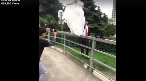 Namun, ia malah terjatuh dan berguling, hanya dalam 10 jam, video tersebut sudah dibagikan 55.665 kali dan ditonton 1,4 juta orang, Jadi, tetap hati-hati ya saat pre wedding.