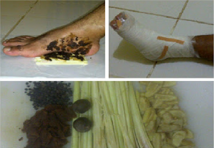 Batok kelapa yang dibakar akan menghasilkan arang panas yang bisa dimanfaatkan sebagai obat kaki terkilir, Caranya masukan arang yang masih panas pada air matang secukupnya lalu gunakan air tersebut untuk merendam telapak kaki sampai batas betis .