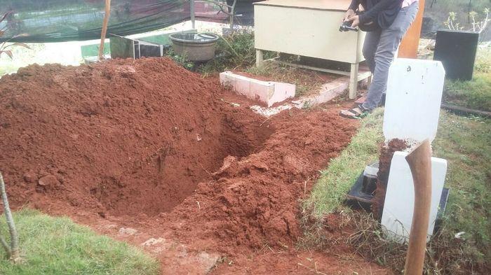 "Tadi saya ikutan membongkar kuburannya. Enggak ada masalah saat dibongkar. Tapi pas saya angkat, tubuhnya (Dafa) membengkak dan bau busuk," ungkap Makmur.