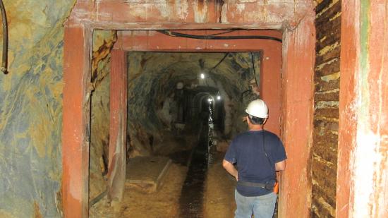 Terowongan licin dengan sedikit penerangan ini merupakan jalur gerobak kereta yang mengangkut bijih-bijih emas. Sekitar 150 meter dari dalam terowongan tambang, emas, perak, dan tembaga diekstraksi.