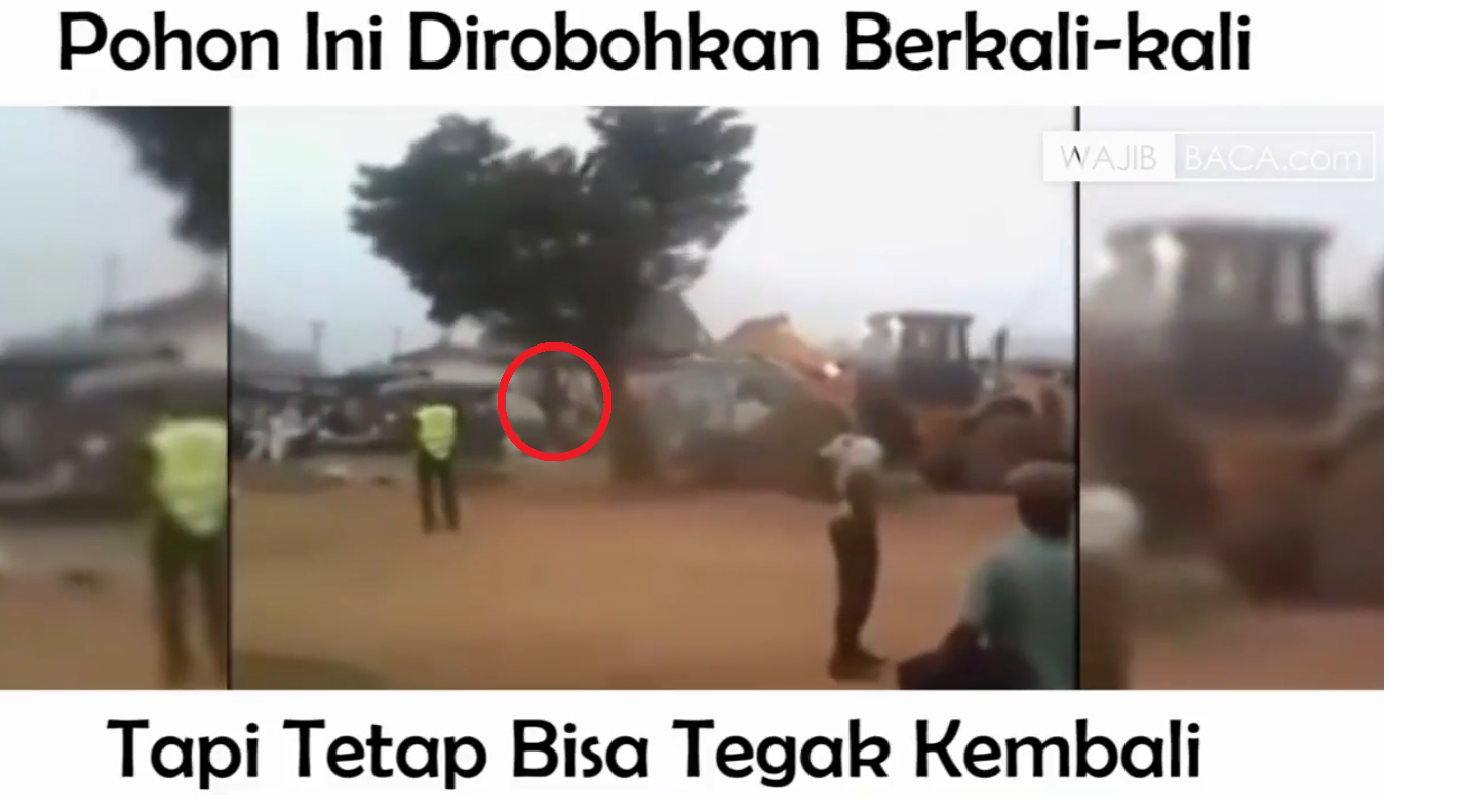Sungguh diluar dugaan, pohon tersebut hendak dirobohkan dan selanjutnya berdiri lagi seperti semula. Hmm, kira-kira apa ya yang membuatnya bisa seperti itu?