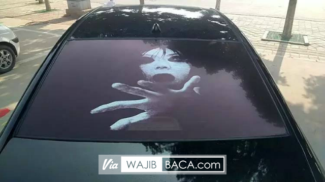 Tren ini adalah memasang stiker decal bergambar horor di kaca belakang mobil!
