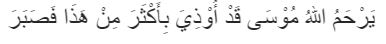 " Yarhamullaahu Muusaa qad uudziya bi aktsara min haadzaa, fa shabara."Artinya,