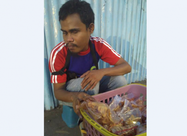Beruntung Rinto mempunyai teman yang peduli terhadap dirinya dan menampungnya di Kota Daeng. Dia pun dipekerjakan sebagai penjual keripik pisang.