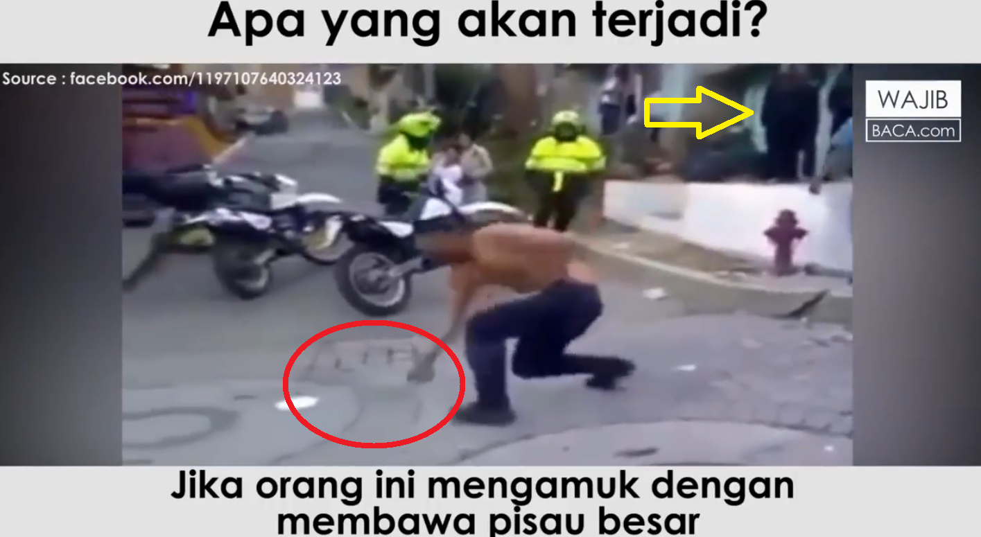 Penulis Unknown | Ditayangkan 21 Nov 2016Apa yang dilakukan jika ada seseorang yang sedang mabuk atau orang gila dengan membawa senjata tajam mengamuk di jalan?