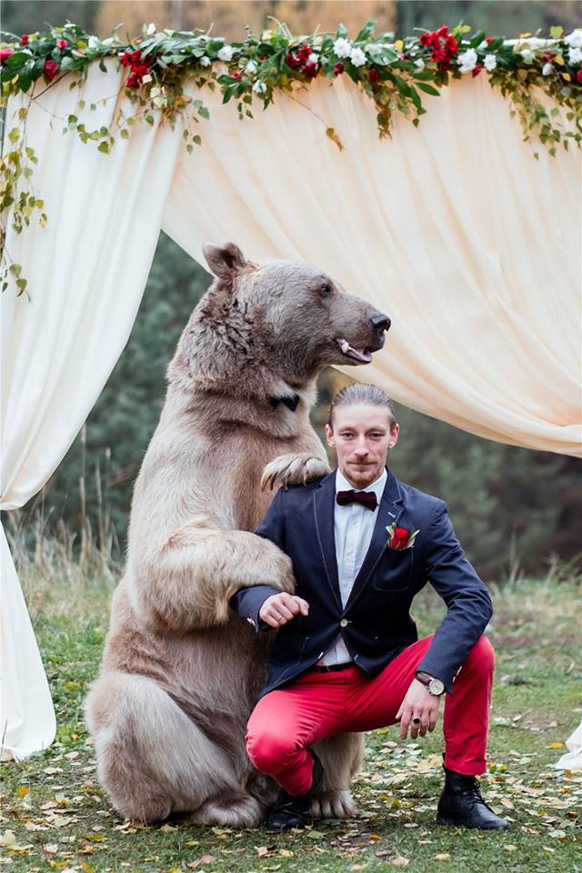 1. Denis dan Nelya dari Moskow, Rusia, menyewa seekor beruang sebagai tamu undangan spesial di hari pernikahan mereka.