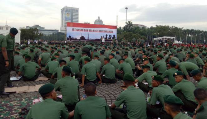 Dikutip dari Viva, ribuan warga dan prajurit sudah berada di lokasi dan menempati barisnya masing-masing. Rencananya istigasah tersebut akan dipimpin oleh ustaz Arifin Ilham.