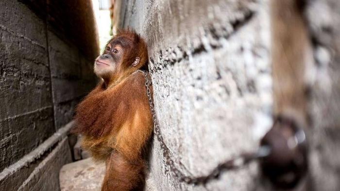 Sungguh Malang, Bayi Orang Utan yang Tak Berdaya Dirantai untuk Pertunjukan
