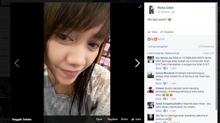 Riska alvionita diketahui mempunyai akun Facebook dengan nama Riska Cibel.