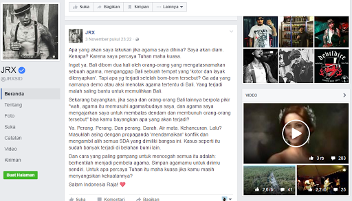 Anda bisa melihat berbagai komentar pro dan kontra para netizen di akun facebook JRX berikut ini.