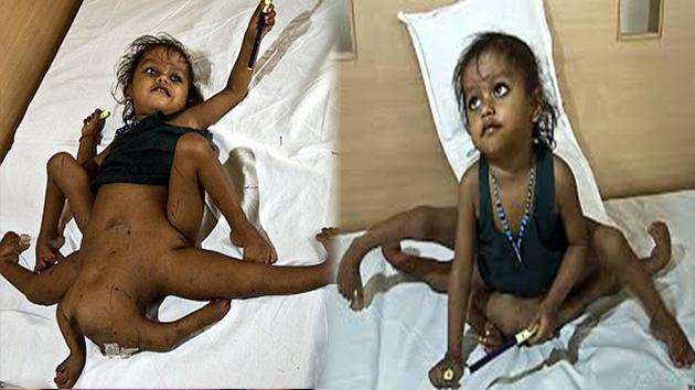 Bayi dengan jumlah tangan dan kaki dua kali lipat dari biasanya ini lahir di negara. 4 tangan dan 4 kaki yang dimiliki oleh bayi ini dihubungkan dengan mitos agama masyarakat India sebagai re-inkarnasi dari salah satu dewa.