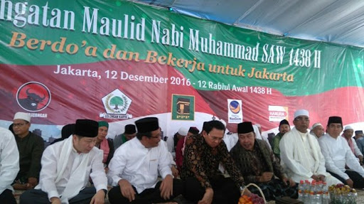 Pasangan calon gubernur dan wakil gubernur DKI urut dua, Basuki Tjahaja Purnama (Ahok) - Djarot Saiful Hidayat memperingati hari Maulid Nabi Muhammad SAW 1438 H di Jalan Talang No 3, Menteng, Jakarta Pusat, Senin (12/12/2016).