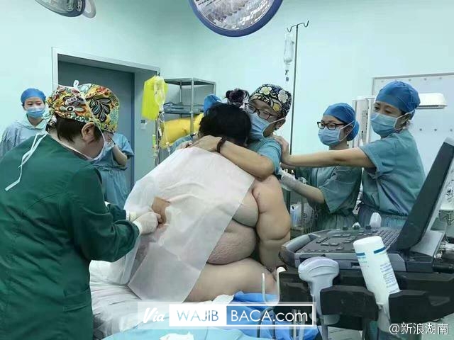 Tangan-tangan dokter kesulitan membantunya melahirkan karena tubuhnya yang begitu besar.