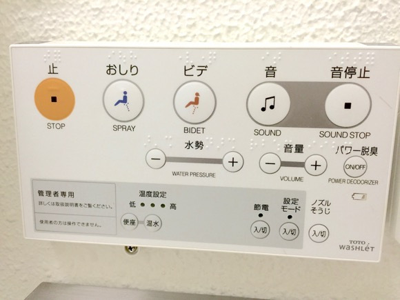 Saat masuk toilet, kamu akan mendapati toilet Jepang yang banyak dengan berbagai tombol dengan tanda dan huruf kanji Jepang.