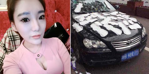 Seorang wanita asal Tiongkok menjahili pacarnya yang diduga selingkuh dengan cara menempeli mobil pacarnya itu dengan pembalut. Tapi pada akhirnya wanita itupun menyesal.