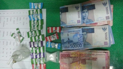 Saat digeledah, polisi menemukan 16 bungkus plastik klip transparan berisi sabu-sabu dengan berat total sekitar 6 gram yang dikemas ke dalam beberapa bungkus permen merek Mintz berbagai warna. Saat itu, polisi juga menyita uang hasil penjualan sabu-sabu sebesar Rp 3 juta.
