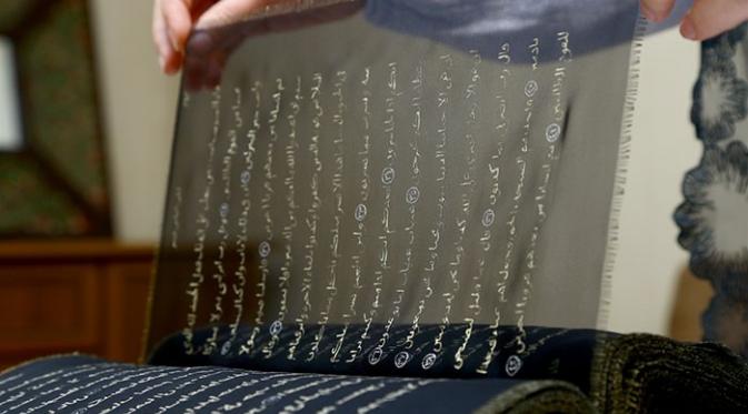 Dikutip dari tribun jogja, ada Al Qur'an bertinta emas yang ditulis di atas sutra halus yang saat ini menyita perhatian berbagai kalangan.