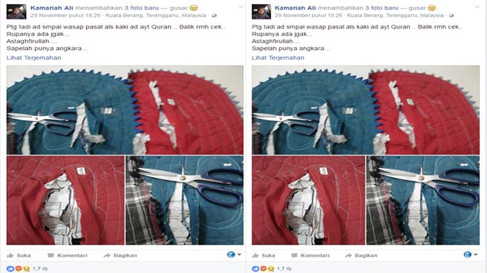 Dikutip dari Tribunnews, berita ini diposting oleh pemilik akun faebook kamariah Ali pada tanggal 29 Nobember 2016 lalu. Wanita yang tinggal di Malaysia itu menunjukkan beberapa foto dari keset di rumahnya.