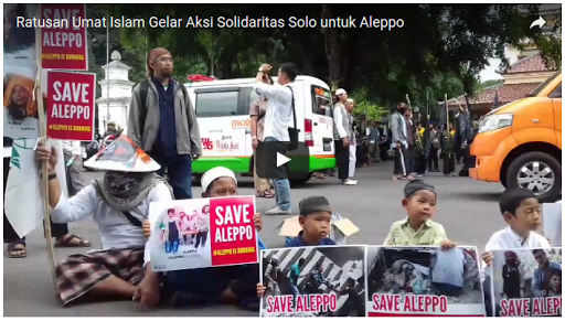 Ratusan umat Islam dari Solo Raya menggelar aksi solidaritas untuk Aleppo, Suriah, Jumat (16/12/2016) siang. Melansir tribunsolo, aksi ini dilakukan di bundaran Gladak, Jl Slamet Riyadi Solo.