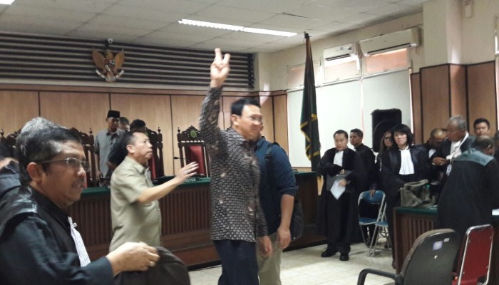 Sidang Hari ini: Ahok Acungkan 2 Jari Saat Tinggalkan Ruang Sidang