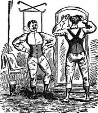 Pada tahun 1820-1830, para pria juga menggunakan korset untuk menunjukkan siluet tubuh mereka. Awalnya, stays hanya digunakan di kalangan militer sebagai alat bantu kesehatan.