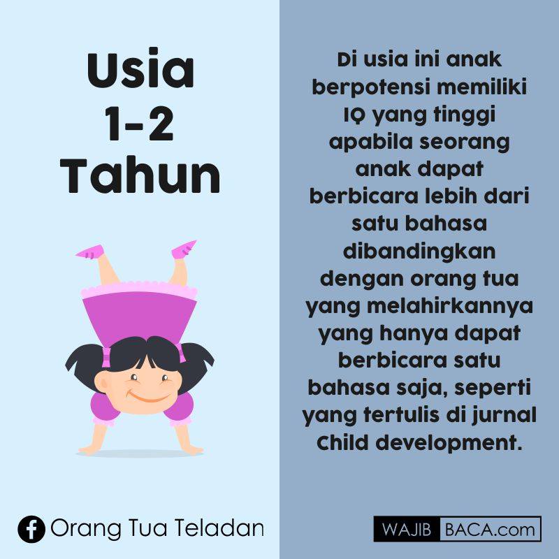 1. Anak yang berusia 1 hingga 2 tahun umumnya hanya berbicara satu bahasa