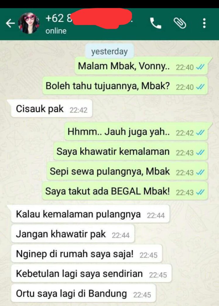 Dalam percakapan tersebut, pengemudi ojek online ini menanyakan tujuan penumpang. Saat ditanya, ternyata tujuannya lumaya jauh. Mungkin kala itu jam sudah menunjukkan larut malam. Sehingga sang driver pun merasa khawatir bila terjadi sesuatu hal yang tak diinginkan.