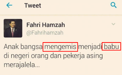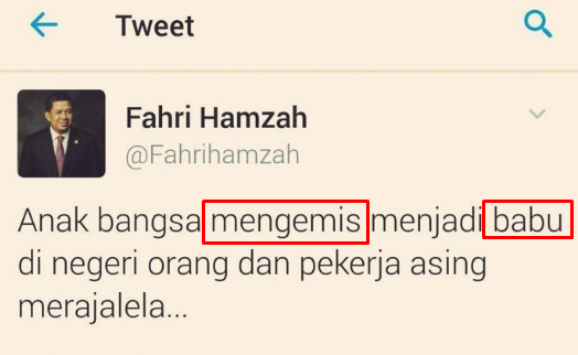Penulis Unknown | Ditayangkan 25 Jan 2017 Wakil Ketua DPR RI Fahri Hamzah dikecam oleh sejumlah pengguna media sosial karena cuitannya di Twitter yang menyebut bahwa warga Indonesia 'mengemis menjadi babu di negeri orang'. Sontak netizen beraksi melihat cuitannya itu.