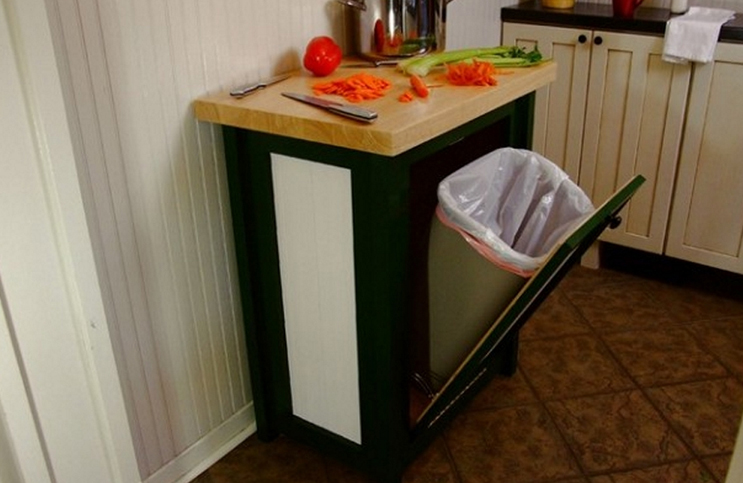 Anda bisa menggunakan tempat sampah berbahan plastik untuk area dapur. Tempat sampah plastik memiliki bentuk dan warna yang beragam. Anda bisa memilih bentuk dan warna disinergikan dengan kondisi dapur.
